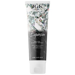 Depending on how my hair is cooperating, I like to add a little bit of Living Proof’s Full Dry Volume Blast™ to my roots as a little bit of volume insurance. You can also use dry shampoo or baby powder, though I don’t like to suffocate my scalp with heavy powders. I also like to add a little shine – those 90s blowouts were all about the gloss – with my Drybar Chaser cream. Next, I want to try IGK’s new Expensive Amla Oil Hi-Shine Topcoat, which protects against UV rays while adding sheen and shine.